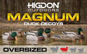 A staple in any decoys spread, the Higdon Outdoors Magnum Mallard has been a proven performer for duck hunters time and time again. Magnum decoys are oversized, bright, high-contrast and visible from longer distances, with realistic details for finishing birds up close. The paint and detailed feathering on these decoys is beautifully detailed, with bright white and iridescent greens on the drakes and rich golden-browns on the hens. These decoys are lethal.