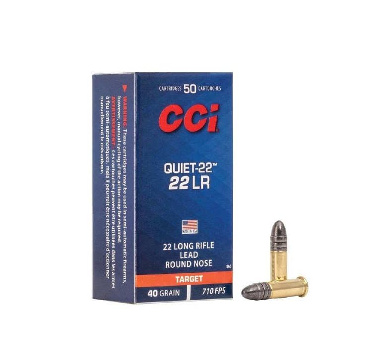 Set your 22 to stealth mode with CCI Quiet-22. It's ideal for bolt-action and single-shot 22 LR rifles, and generates 75% less perceived noise than standard velocity 22 LR rounds. Perfect for areas where noise may be a problem, and is ideal for introducing newcomers to the shooting sports.