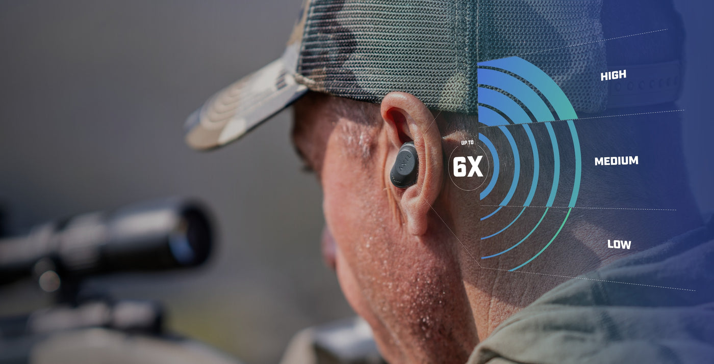 Turn on the hearing enhancement to boost your hearing up to 6x for ultimate situational awareness.